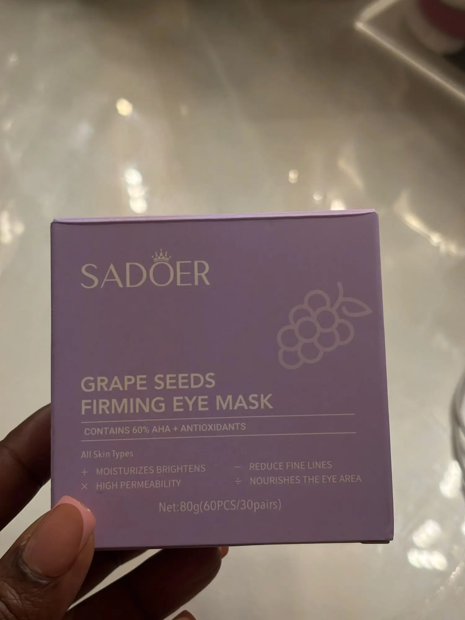Reveal bright, firm, and well-hydrated eyes every day with the SADOER Grape Eye Mask – 60pcs — your essential eye care solution. ✨
